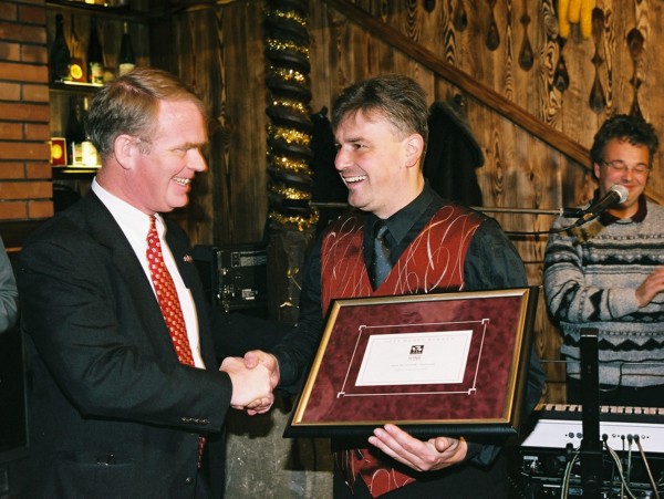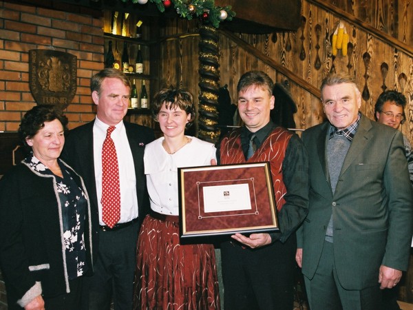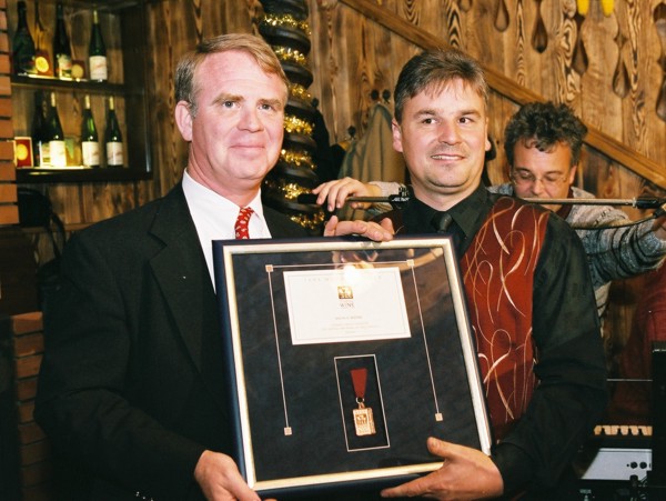Diese erofnung var keine normale erofnung denn an diesen Tag erhilten wir auch die bronzane Madalie fur Velsh rizling-SJI 2003, velche hatt uns der neue Amerikanische Ambasador Mr. Robertson verleihen.